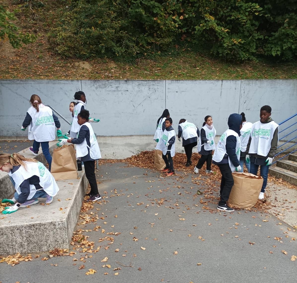 Les élèves de CM1/CM2 ont ramassé les feuilles dans la cour Saint-Marcelin. ...