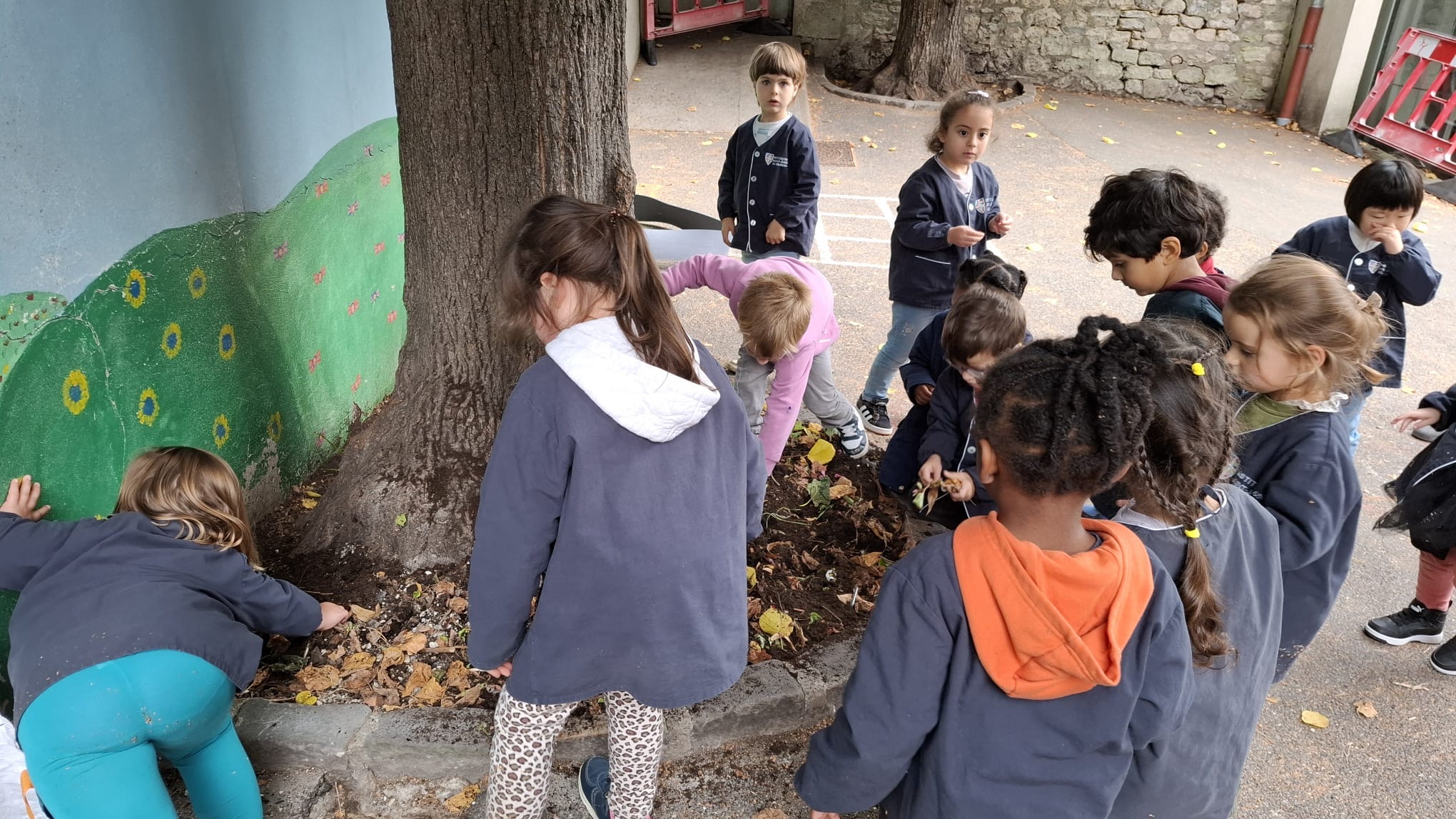 Les élèves de petite et moyenne sections ont participé à une activité jardinage : ils ont retiré les fleurs d’été, nettoyé le tour de l’arbre et plant...